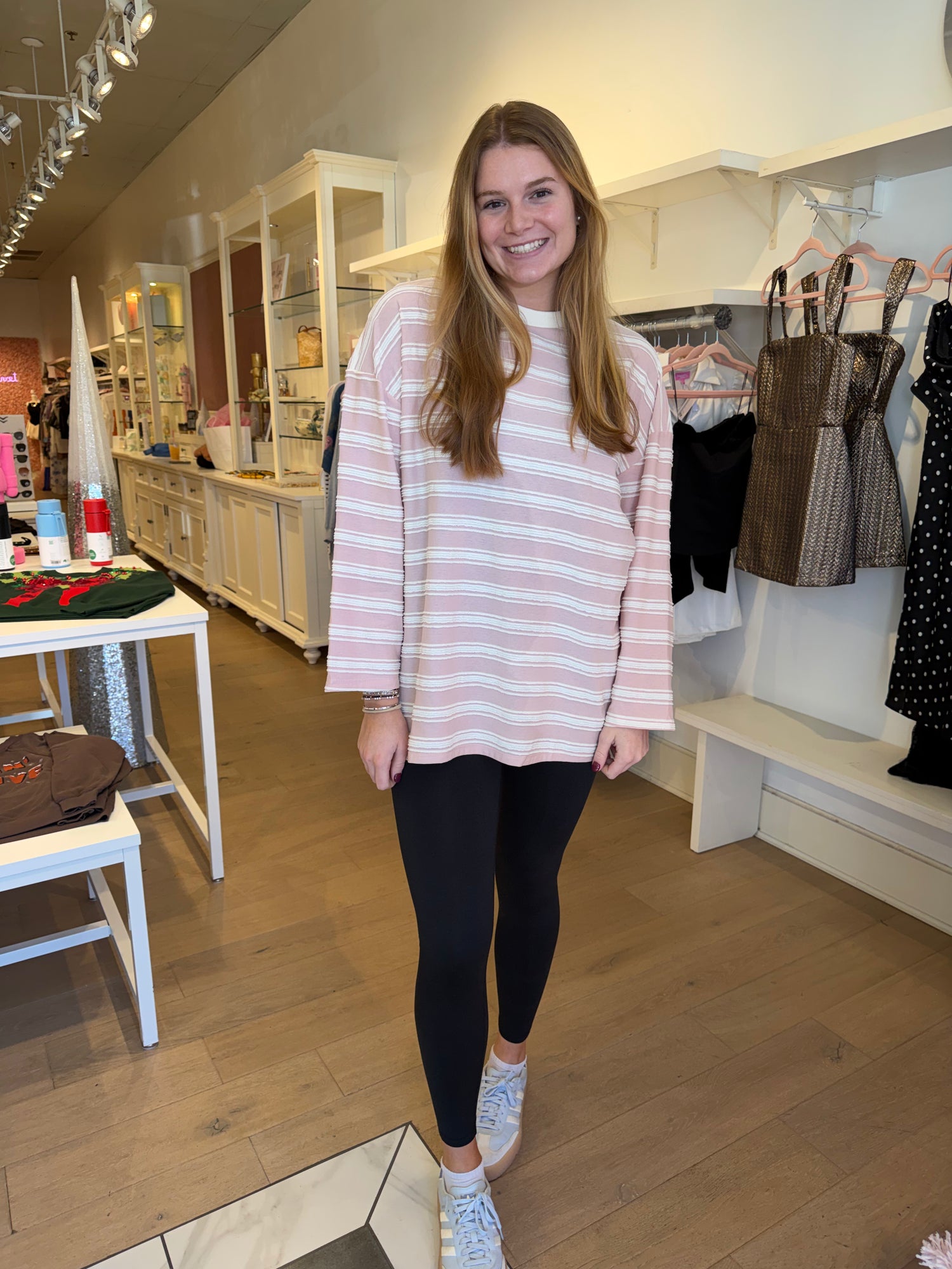 Blush striped relaxed long sleeve tshirt