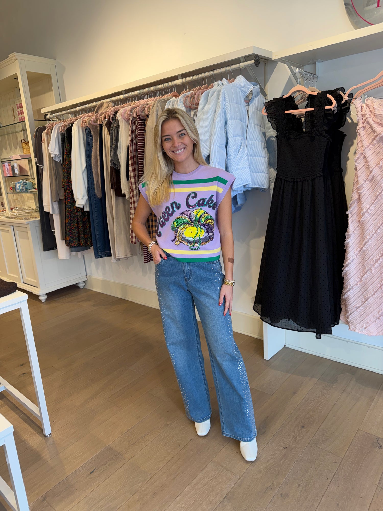Queen Of Sparkles Lavender, Green & Yellow 'Queen Cake' Striped Top